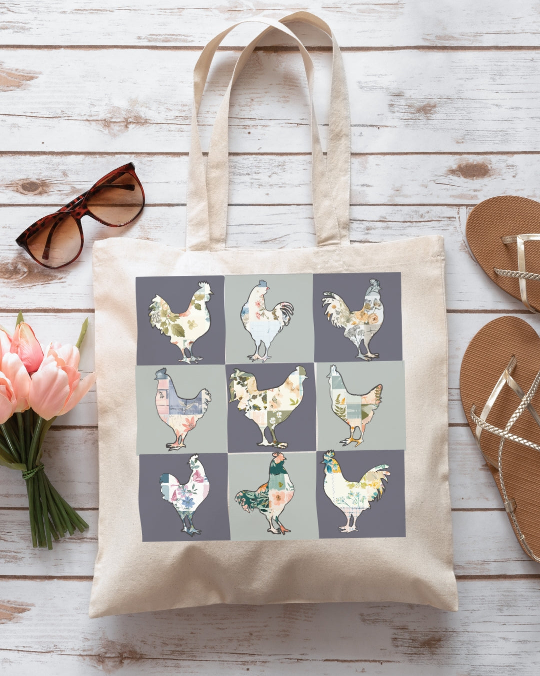 Boho Chicken Canvas Tote Bag